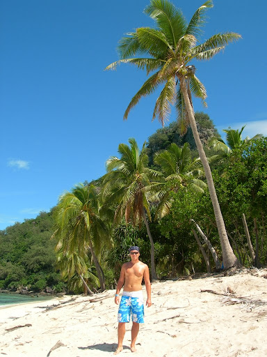 Takze nasz czas na wyspach plynal sobie powoli, w rytmie wschodow i zachodow slonca, kolejnych zanurzen w cieplutkim turkusie oceanu, spacerow po wyspie i rozmow z wspolmieszkancami. Zeby nie bylo jednak, ze stronilismy od wszelkich aktywnosci, to przedsiewzielismy jedna wycieczke na pobliska wyspe, na ktorej krecono film „Cast Away – Poza Swiatem” z Tomem Hanksem. Czesc pracownikow naszego lokum pomagala podczas zdjec, czego nie omieszkali nadmieniac, kilka razy. Wyspa ta znajdowala sie pol godziny lodka od nas i po wielu usilnych probach namowienia kogos, zeby tam poplynal, kilkakrotnym przekladaniu terminu (mimo, ze placilismy za ta wycieczke) udalo nam sie wybrac na poszukiwania Toma Hanksa i jego kumpla wilsona. Widzielismy wiec jaskinie w ktorej sobie mieszkal, plaze na ktorej ustawil napis „help” i wszystko inne. Byl to kolejny z filmowych planow, ktory zaliczylismy w tej podrozy. Co bardziej wnikliwi fani filmu powinni w tym momencie zaprotestowac, mowiac, ze przeciez wyspa, na ktorej rozbil sie Tom Hanks byla na totalnym odludziu, bez ladu w poblizu i z oceanem po horyzont. No wiec telewizja klamie! A nasza i kilka innych pobliskich wysp, z ekranu po prostu wymazano:) Jednym z bardziej surrealistycznych doznan, bylo to, ze tego samego dnia wieczorem, na plazy rozwiesilismy przescieradlo i odbyla sie projekcja wlasnie tego filmu. Przedziwne wrazenie byc na koncu swiata, ogladac film krecony w poblizu i slyszec jednoczesnie szum palm i oceanu. Polecamy. Oprocz Cast Away, w naszym plazowym kinie zaliczylismy takze „Blekitna Lagune” i „Powrot do Blekitnej Laguny” – wyspiarska klasyke, ktore rowniez krecona byla na pobliskich wyspach. Na te juz jednak nie poplynelismy.